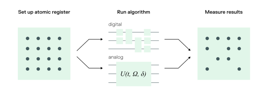We know that there are some problems which very quickly become intractable for classical computers and where quantum computers already outperform them, however, it remains a lively debate as to whether these instances constitute a “practical quantum advantage”. In this series of blog posts we addressed the question of when to use a quantum computer at all (still a very debated topic). Usually instances where quantum computers can outperform classical computers involve operating the quantum computer in analog mode and using it to simulate another quantum system. There are two modes or paradigms of quantum computing: digital and analog, each with its own benefits and drawbacks, and where a single underlying hardware can often be operated in either mode, as at Pasqal.