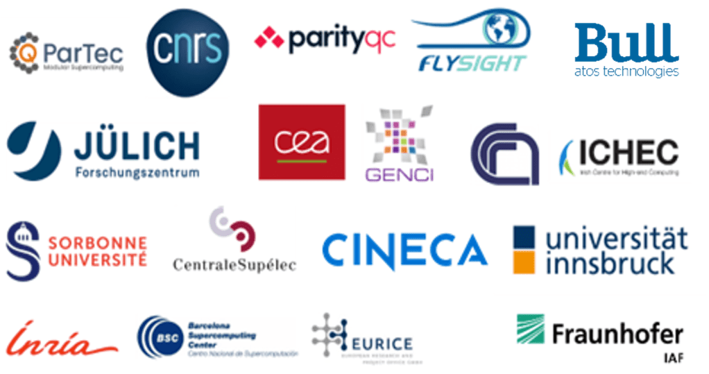 Partners: FZJ, CEA, GENCI, BULL, CNR, NUIG-ICHEC, University of Innsbruck, EURICE, CNRS, Inria, CINECA, BSC, FlySight, ParityQC and Fraunhofer IAF