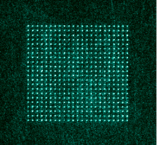 Register of approximately 500 atomic qubits assembled and controlled by laser, obtained in a Pasqal quantum computer.